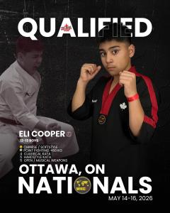 With qualification secured across forms, weapons, and fighting, Cooper now turns his focus to Nationals as he continues his pursuit of selection to Team Canada and the WKC World Championships.